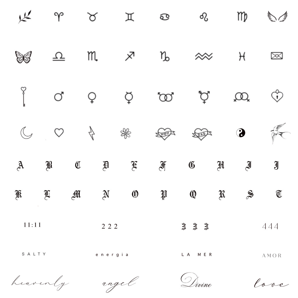 Take a look below for a size & price guide for our ever-growing catalog of fine-line tattoos to choose from at G+O.